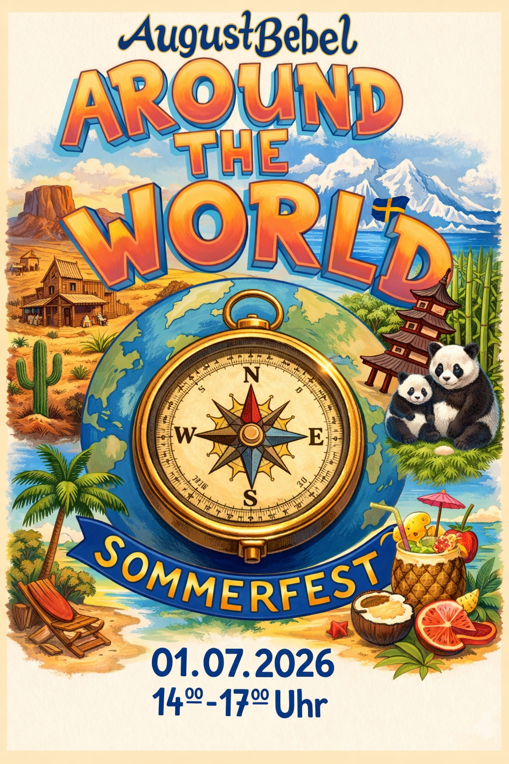 Unter dem Motto „Around the World“ erwartet euch ein fröhlicher und bunter Nachmittag mit vielen spannenden Aktionen, Spielen und kleinen Überraschungen aus aller Welt.
